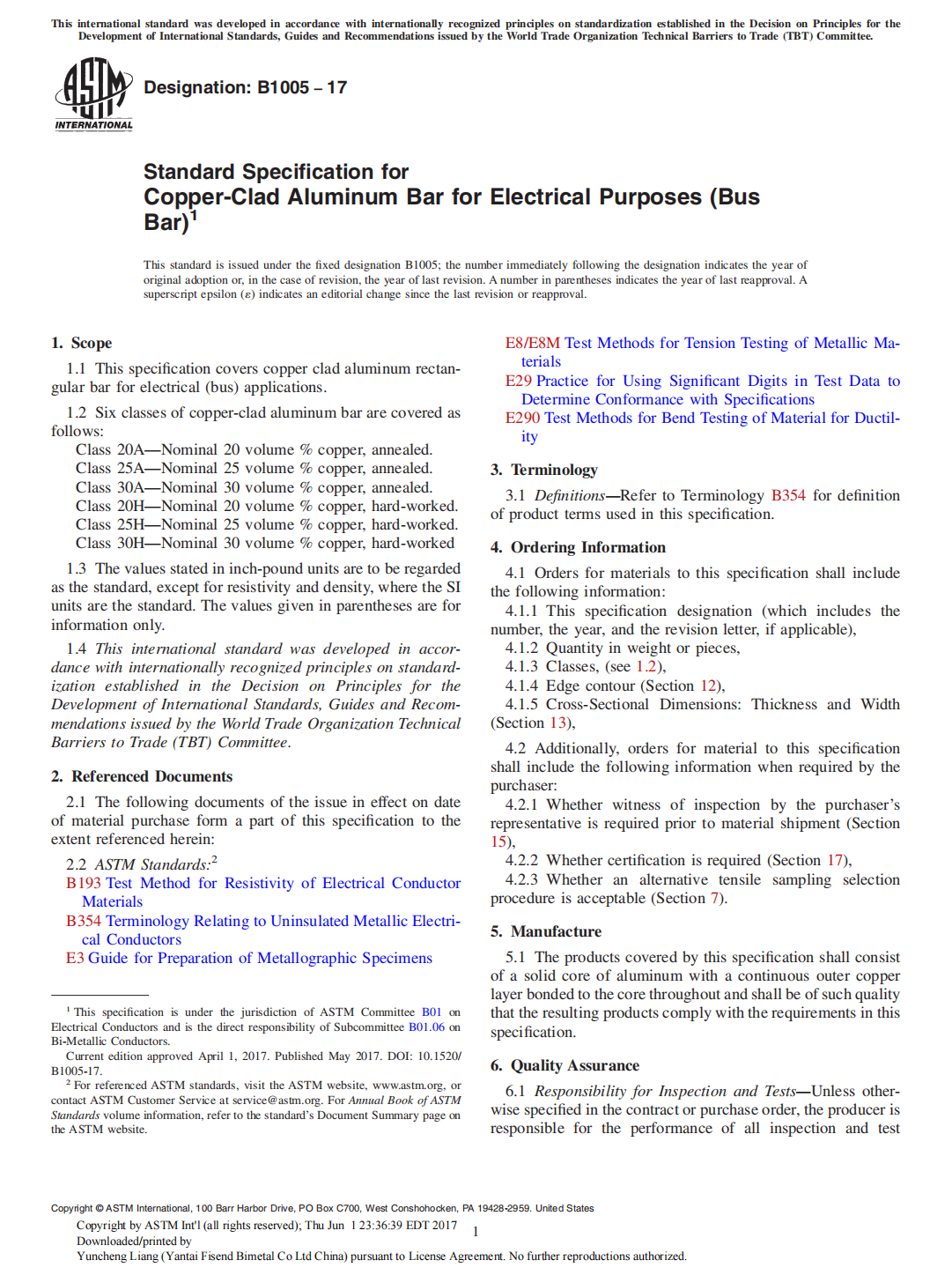 銅鋁復合材料國際標準 ASTM B1005-17