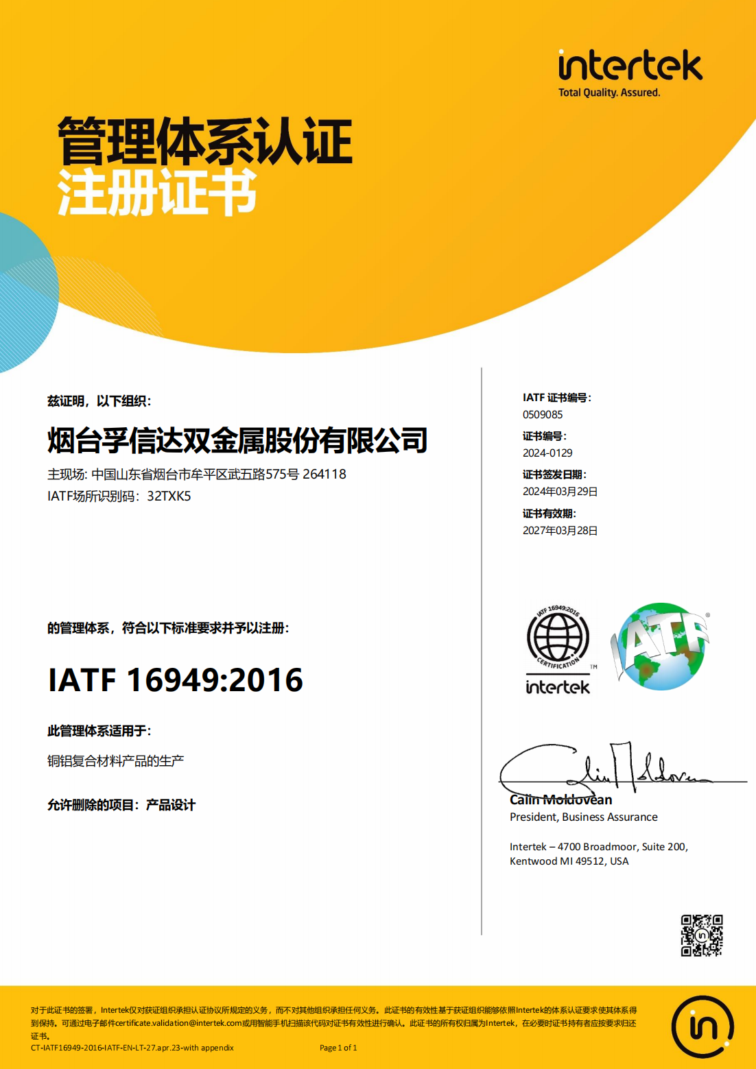 質(zhì)量管理體系認證證書